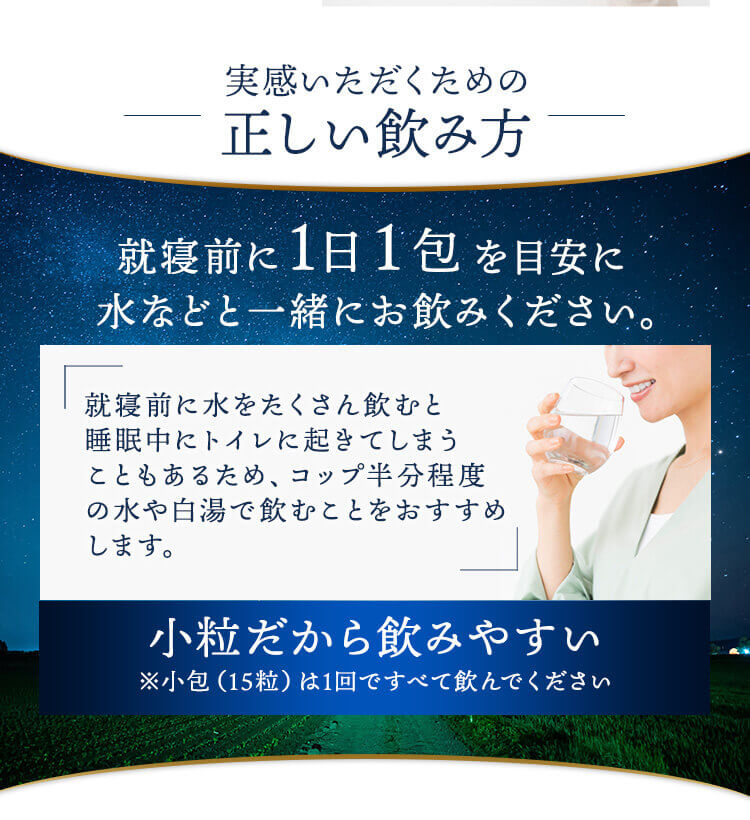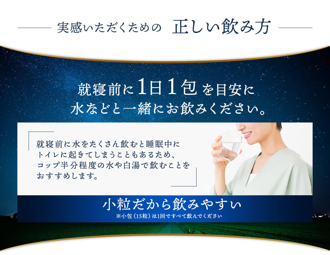 1日1小包を目安に使用してください。しっかり休息を取りたい日に使用して頂いても構いません。